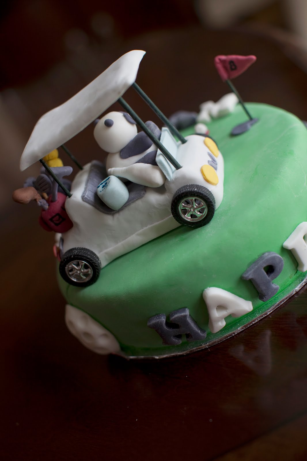 Martini & Golf doesn't really go along like bread and butter.. but, this special cake was designed for a birthday boy who loves golf and I guess a moderate drinker ;P instead of putting a glass of martini to accompany this panda, we throw in some extra bottles of greygoose and bombay sapphire to liven up that game of golf ! ;)